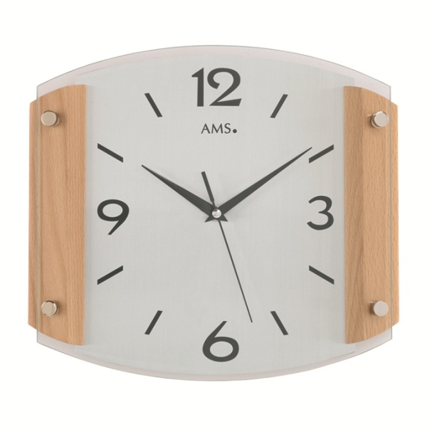 • Klok 5938-18 is een wandklok met massief beukenhout, een aluminium wijzerplaat en gebogen mineraalglas.