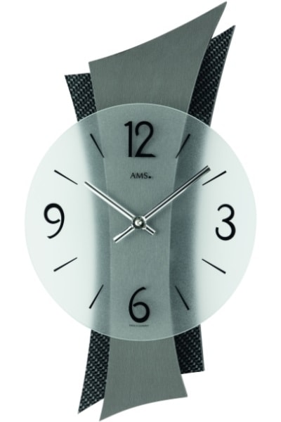 • Klok 9400 is een wandklok met een achterwand van carbon waarop gebogen en geslepen metaal is gemaakt, de wijzerplaat is van mat mineraalglas.