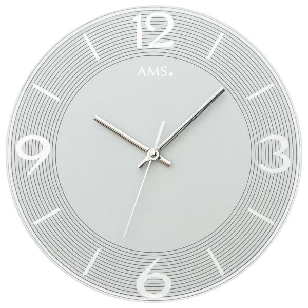 • Klok 9571 is een wandklok van geslepen en bedrukt spiegelglas.