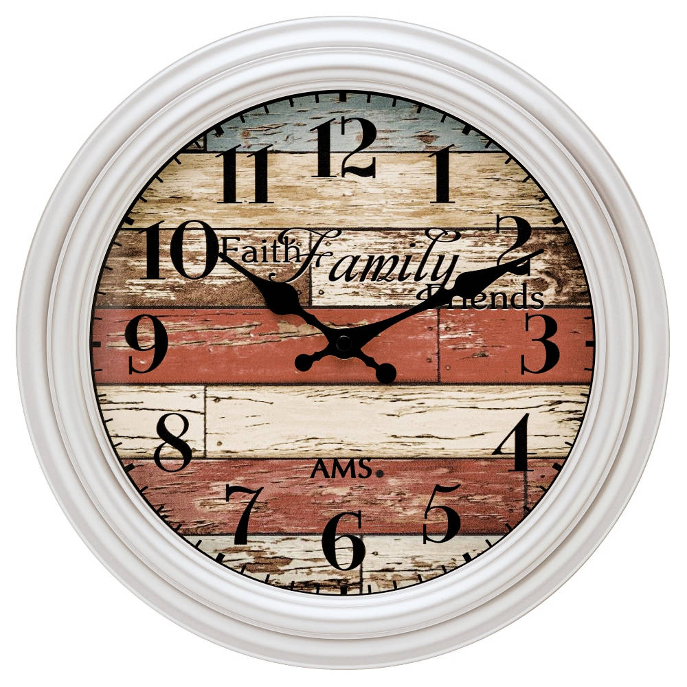 • Deze wandklok heeft een quartz uurwerk die functioneert op een meegeleverde kwaliteitsbatterij.