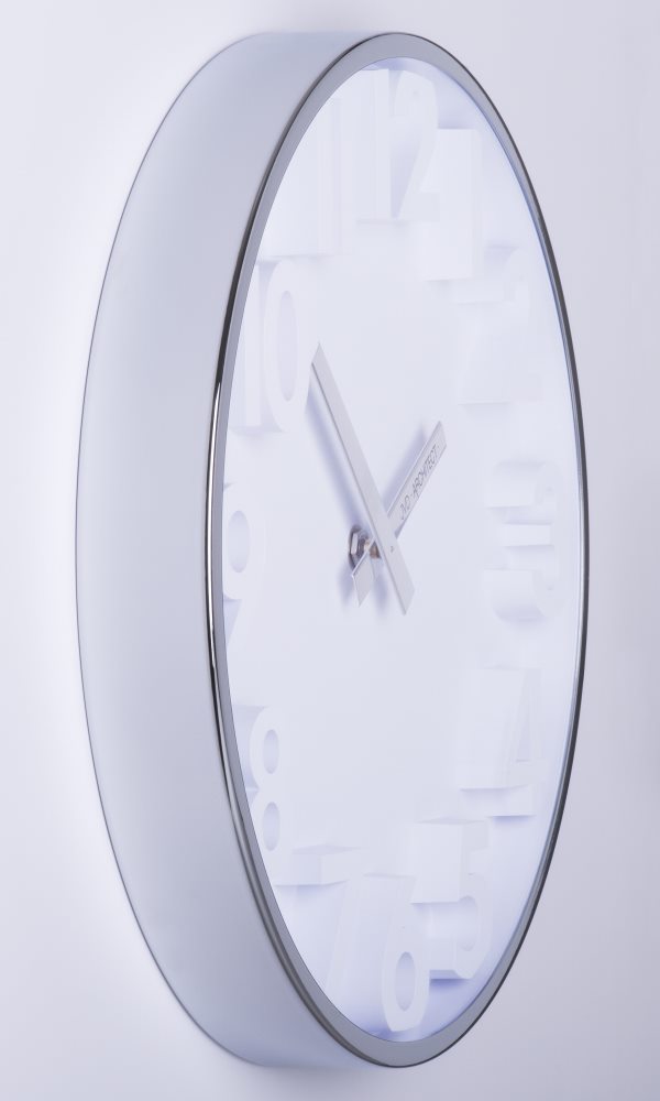 • Klok HC03-1J is een wandklok met een glanzend chroomkleurige rand.
