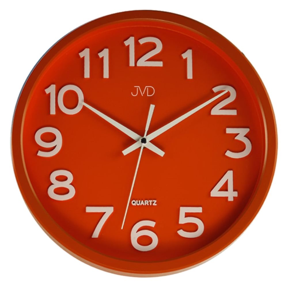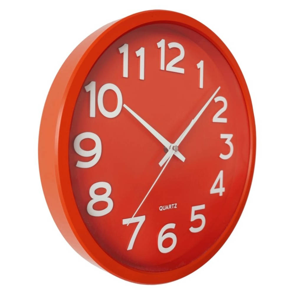 • Klok HX2413-5J is een rode wandklok in een kunststof uitvoering met witte opgelegde cijfers en witte metalen wijzers.
