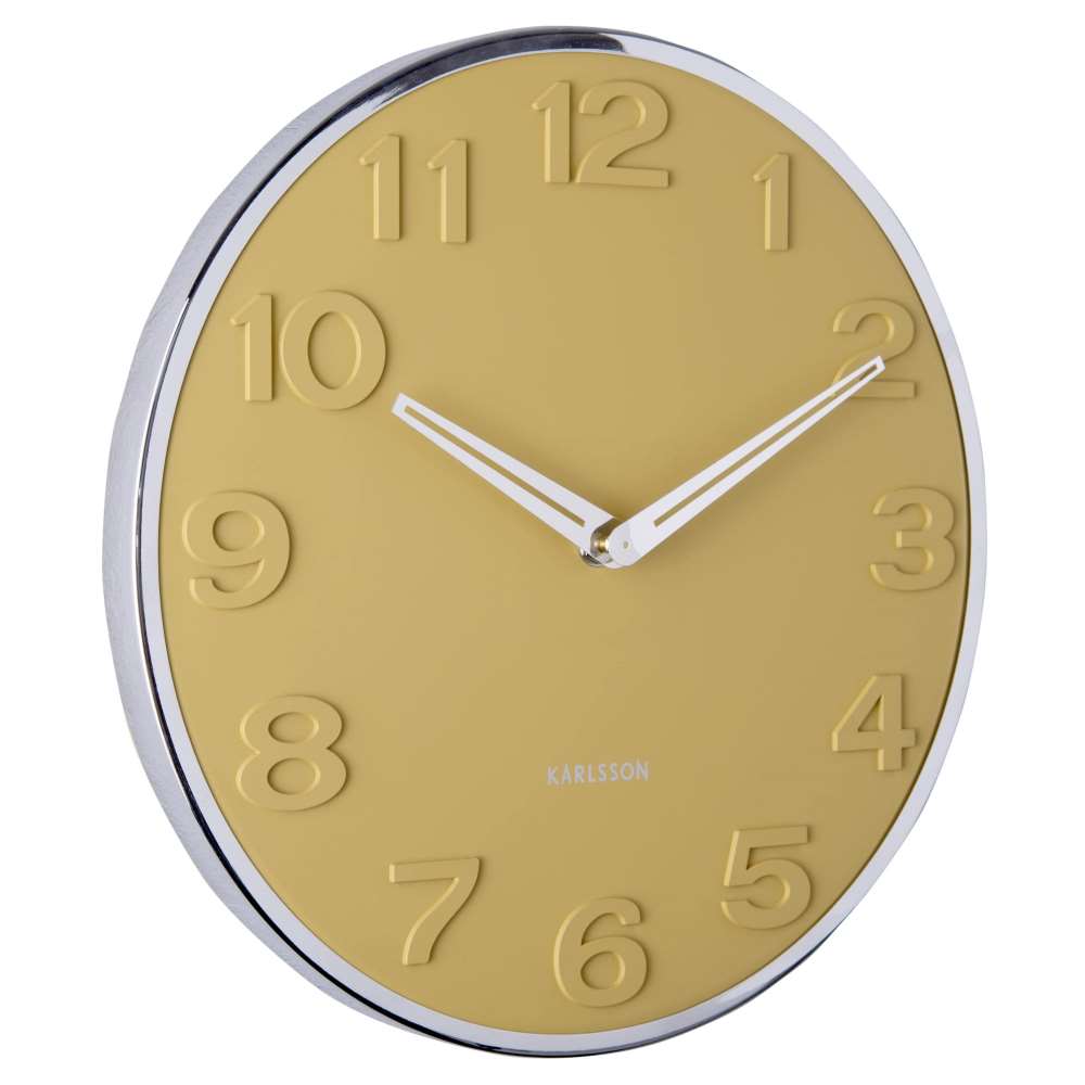• Klok KA5759YE is een wandklok in een mosterdgele uitvoering met opgelegde cijfers.