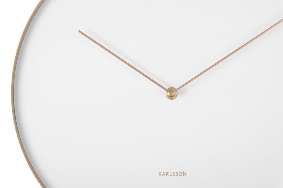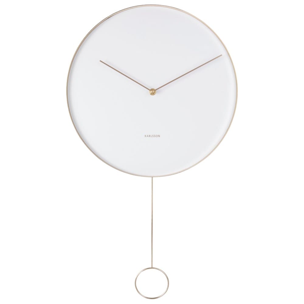 • Klok KA5766WH is een wandklok in een gematteerde goudkleurige metalen uitvoering met een mat witte wijzerplaat en goudkleurige metalen wijzers.