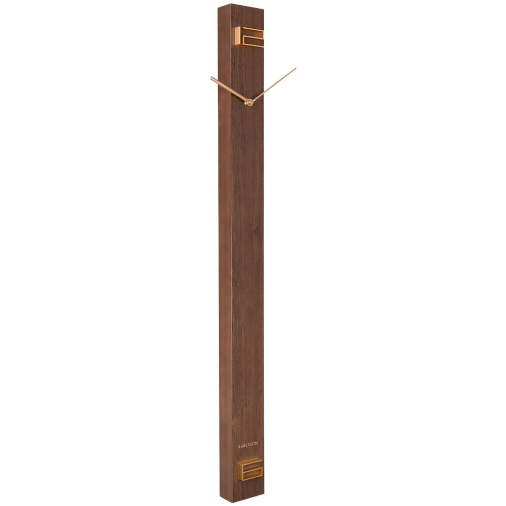 • Klok KA5780DW is een wandklok van hout in een bruine uitvoering opgelegd met goudkleurige cijfers.
