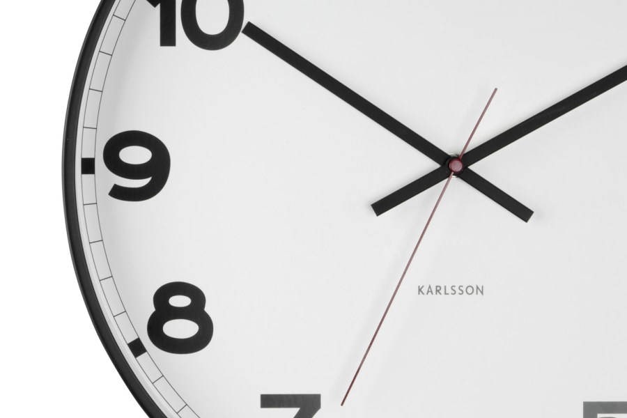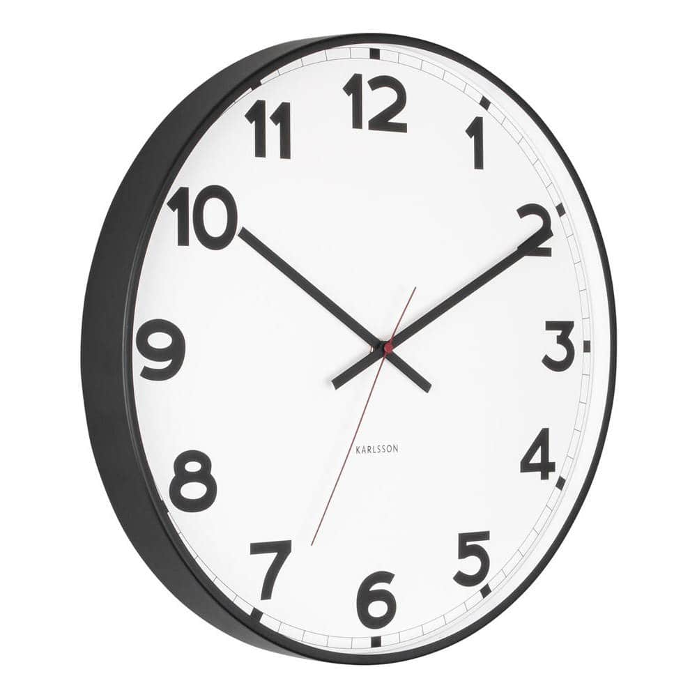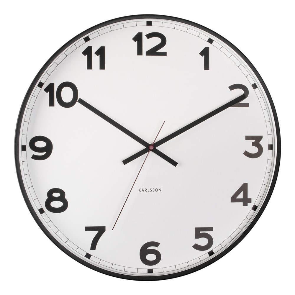 • Klok KA5847WH is een wandklok met een mat zwart gelakte metalen rand en een witte wijzerplaat.