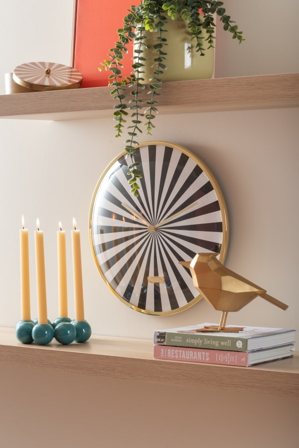 • Klok KA6007BK is een wandklok met een zwart-wit candy design wijzerplaat, lijkend op de klassieke swirl snoepjes.