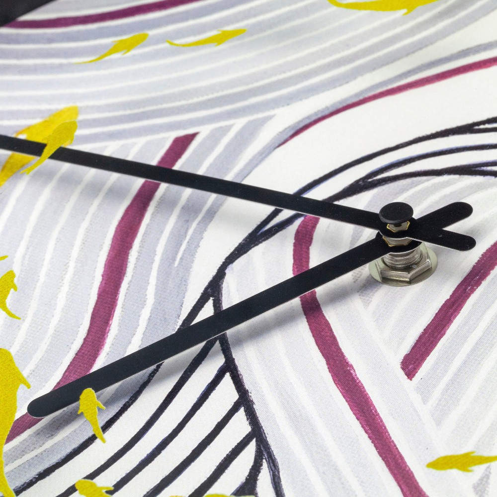 • De wijzerplaat is bedrukt met een golvend design en kois die in een cirkel rond zwemmen.