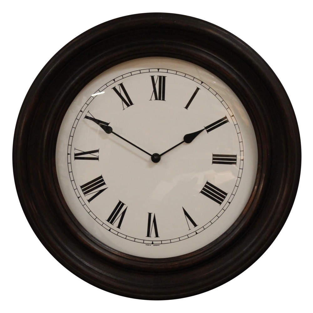 • Klok 1603020 is een antiek stijl wandklok met een massief houten koloniaal gekleurde rand en een gebold mineraalglas.