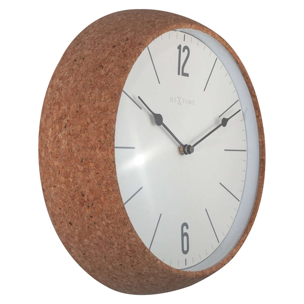 • Klok NE3509WI is een wandklok van kurk met een crèmekleurige wijzerplaat met grijze opgedrukte cijfers en strepen.