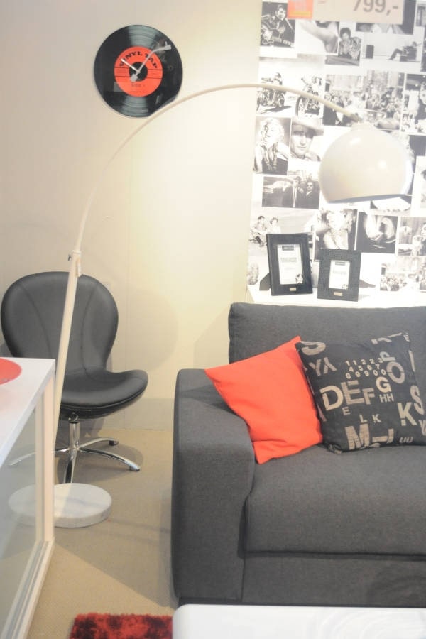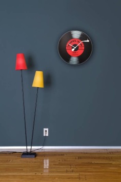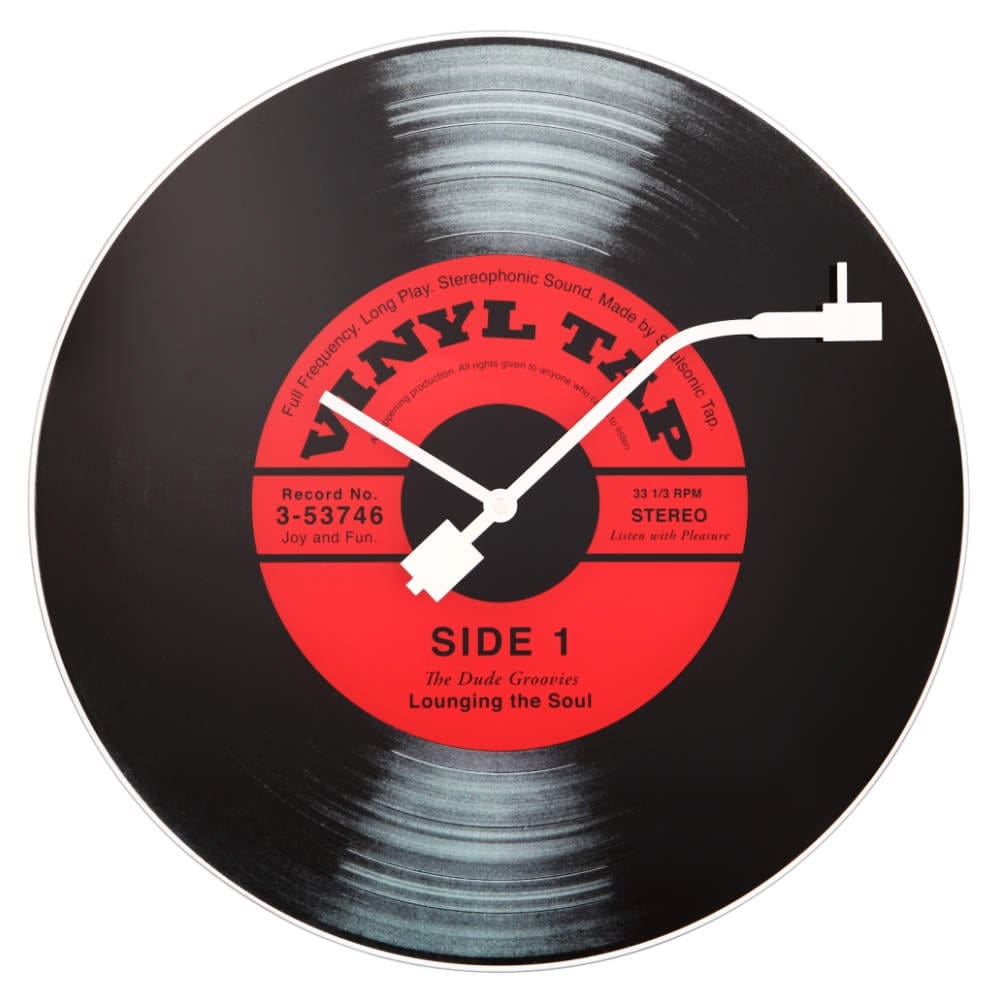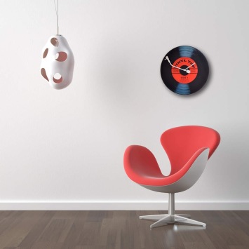 • Klok NE8141 is een lp wandklok van bedrukt glas met vinyl motief, rood tekstlabel en zilverkleurige metalen wijzers in de vorm van een pick-upnaald.