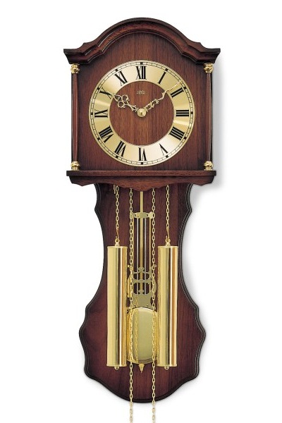 • Klok 211-1 is een wandklok in een messing gekleurde uitvoering met een notenhouten kast.