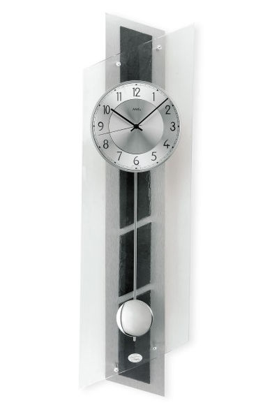 • Klok 5217 is een wandklok met een achterwand van geslepen aluminium en echt leisteen, gebogen mineraalglas en een aluminium wijzerplaat.