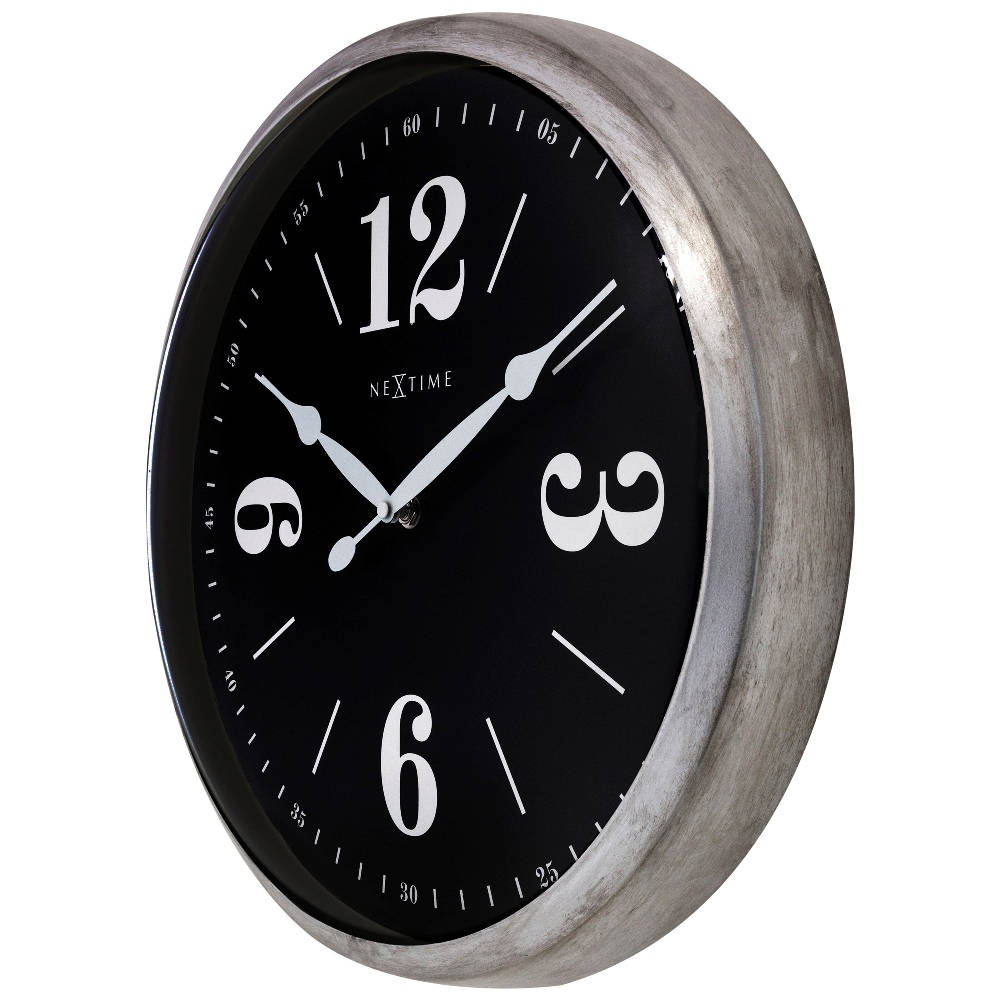 • Klok NE3290ZI is een wandklok in een antiek stijl uitvoering met een handbeschilderde antiek zilver met zwart gekleurde metalen rand.