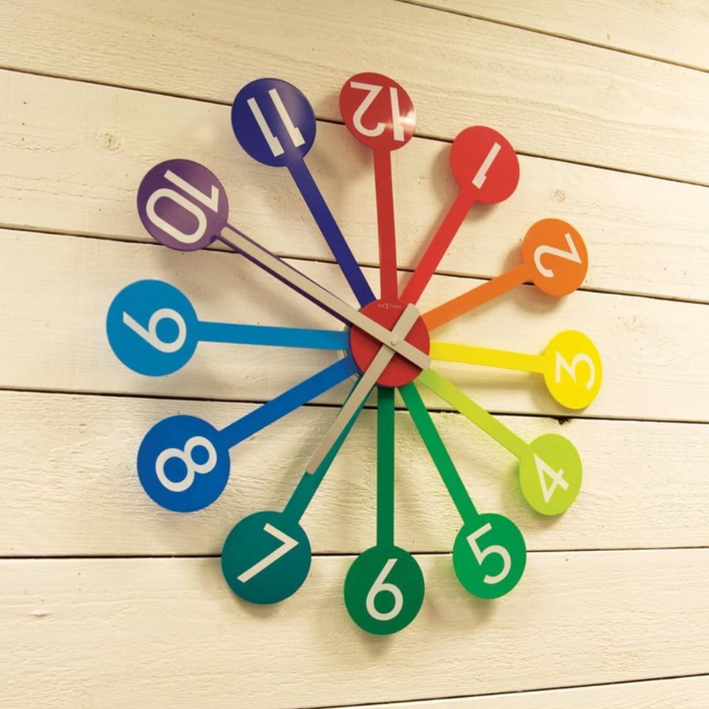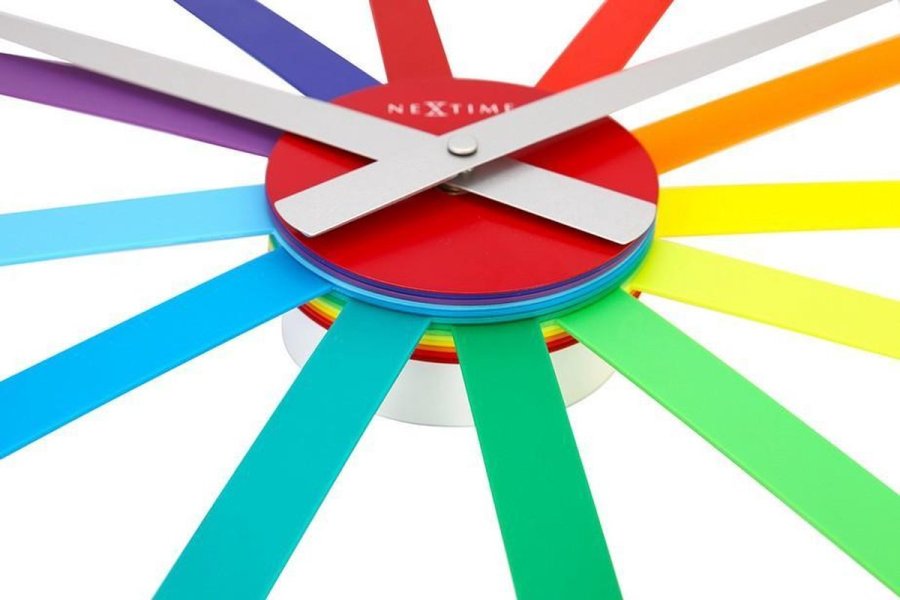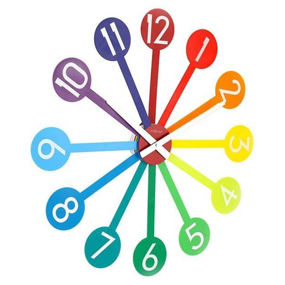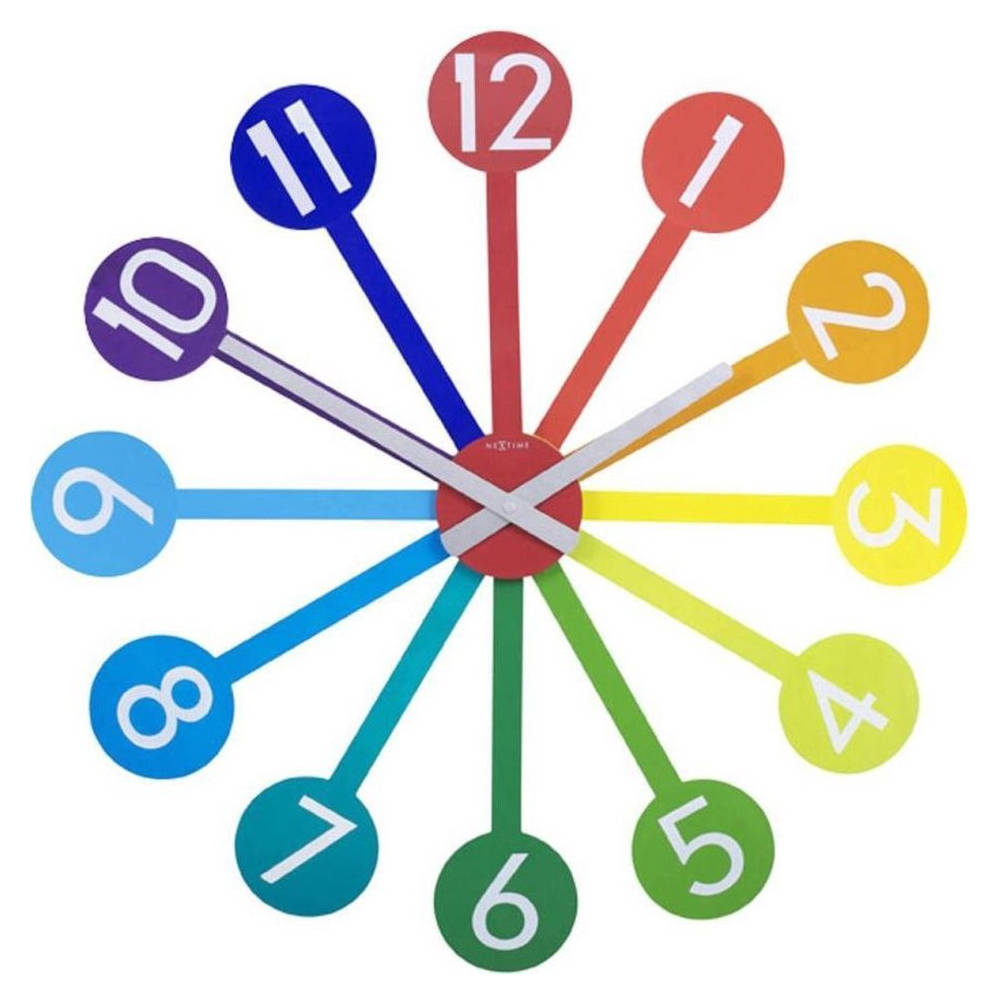 • Klok NE2995DI is een grote design wandklok van kunststof in een multicolor uitvoering met witte opgedrukte cijfers.