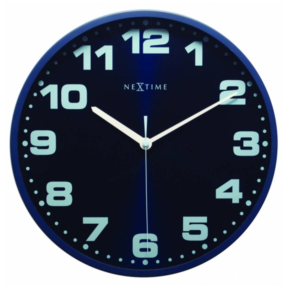 • Klok NE3053BL is een wandklok met een matte donkerblauwe metalen rand.