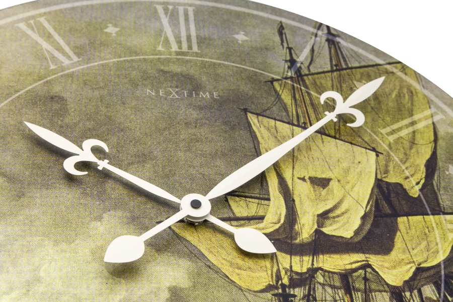 • Klok NE3182 is een grote wandklok van hout bedrukt met een afbeelding van een oude zeilboot.