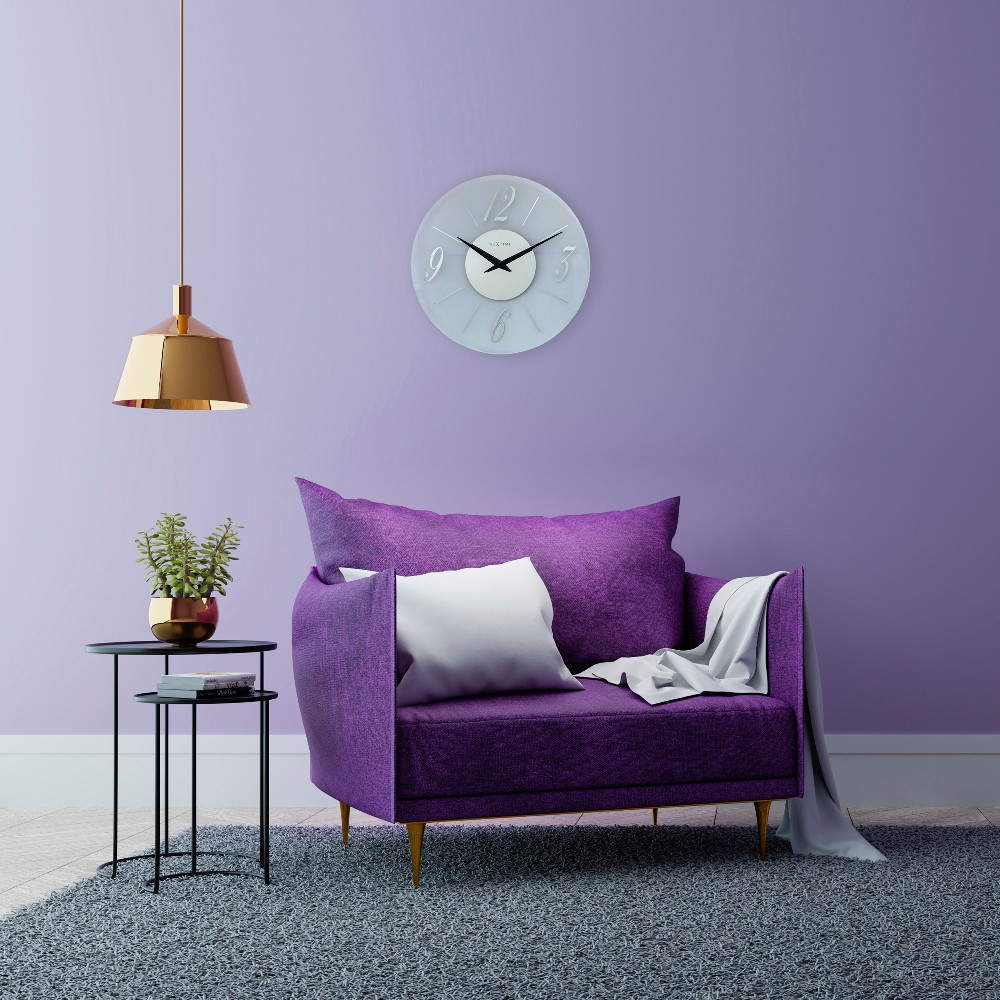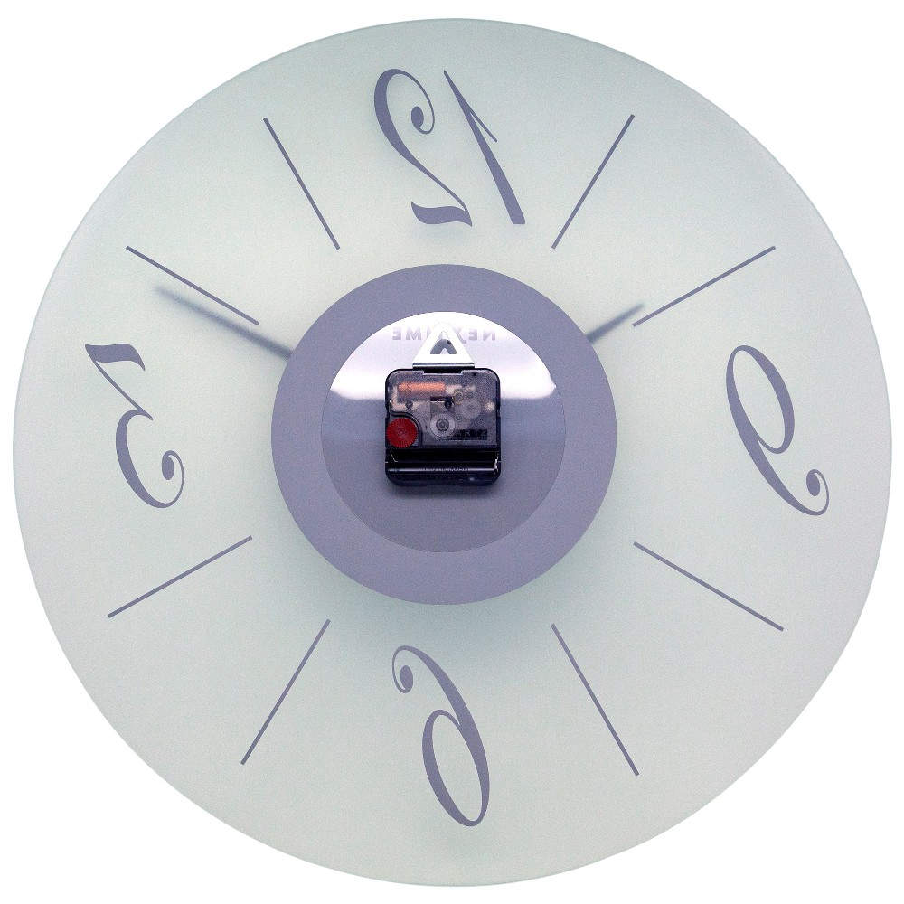 • Klok NE3304FR is een wandklok van mat glas met een geslepen rand en spiegelende cijfers en middendeel.