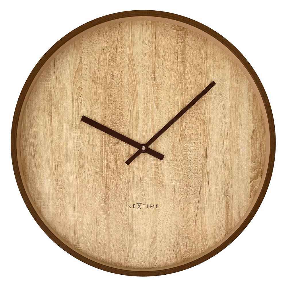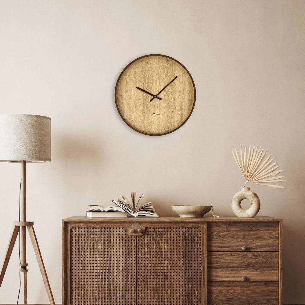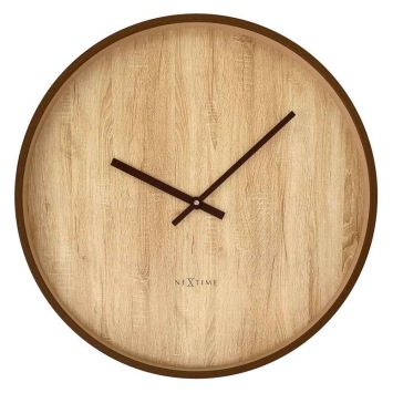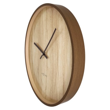 • Klok NE3330 is een wandklok met een notenhout motief kunststof rand en een licht hout motief wijzerplaat.