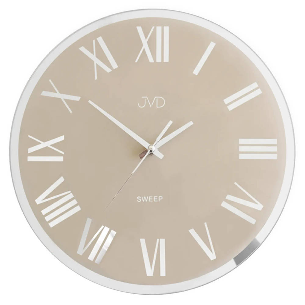 • Klok NS22006-1J is een wandklok in een champagne kleur bedrukte spiegelglas uitvoering met zilverkleurige wijzers.