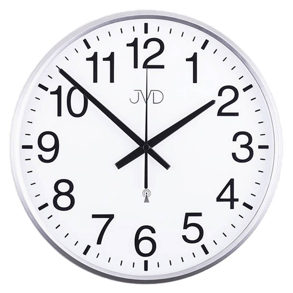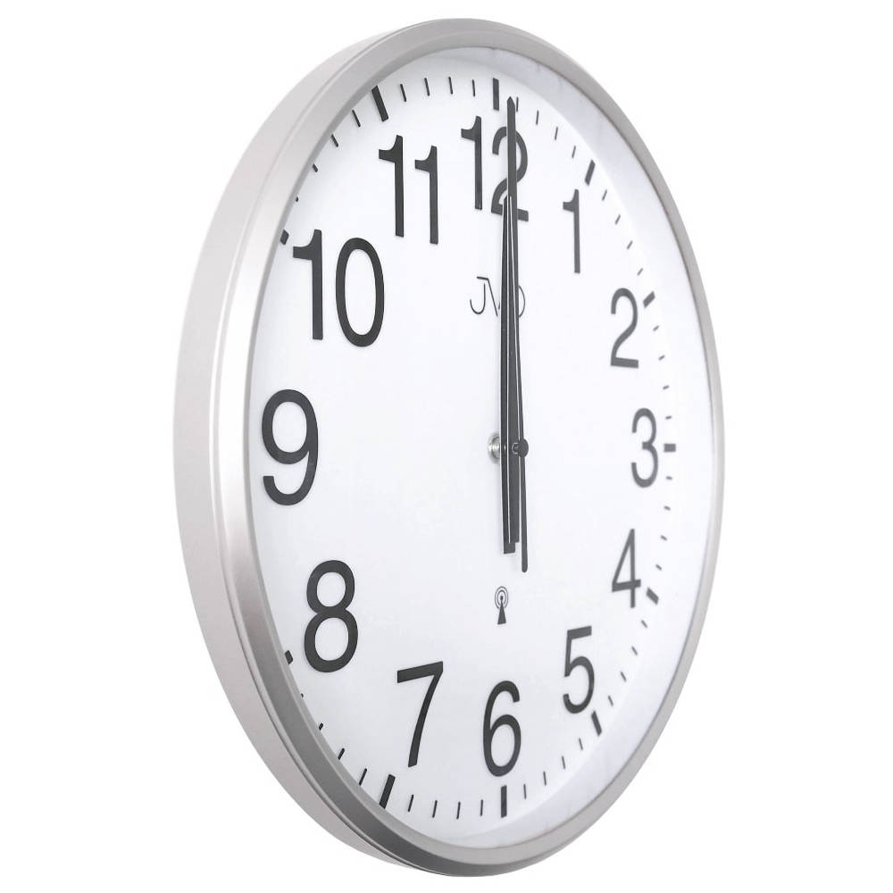 • Klok RH684-1J is een wandklok met een metallic zilver gelakte kunststof rand en een vlak mineraalglas voor de wijzerplaat.
