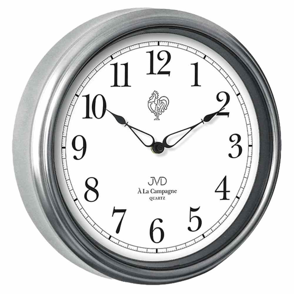 • Klok TS2887-1J is een wandklok met een diepe zilverkleurige kunststof rand en een vlak mineraalglas voor de witte wijzerplaat.