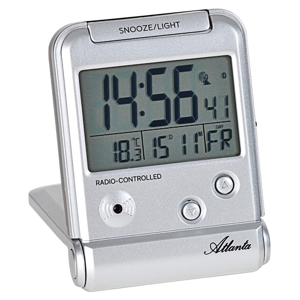 • Wekker 1806-19A is een digitale reiswekker in een zilverkleurige kunststof uitvoering met weergave van tijd, datum, temperatuur en dagweergave in het Engels.