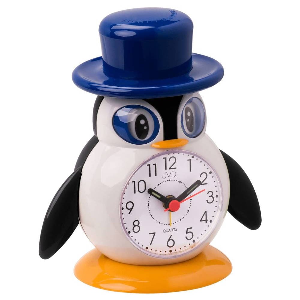 • Wekker SR52-5J is een kleine kinderwekker pinguïn met zwarte opgedrukte cijfers op de witte wijzerplaat.