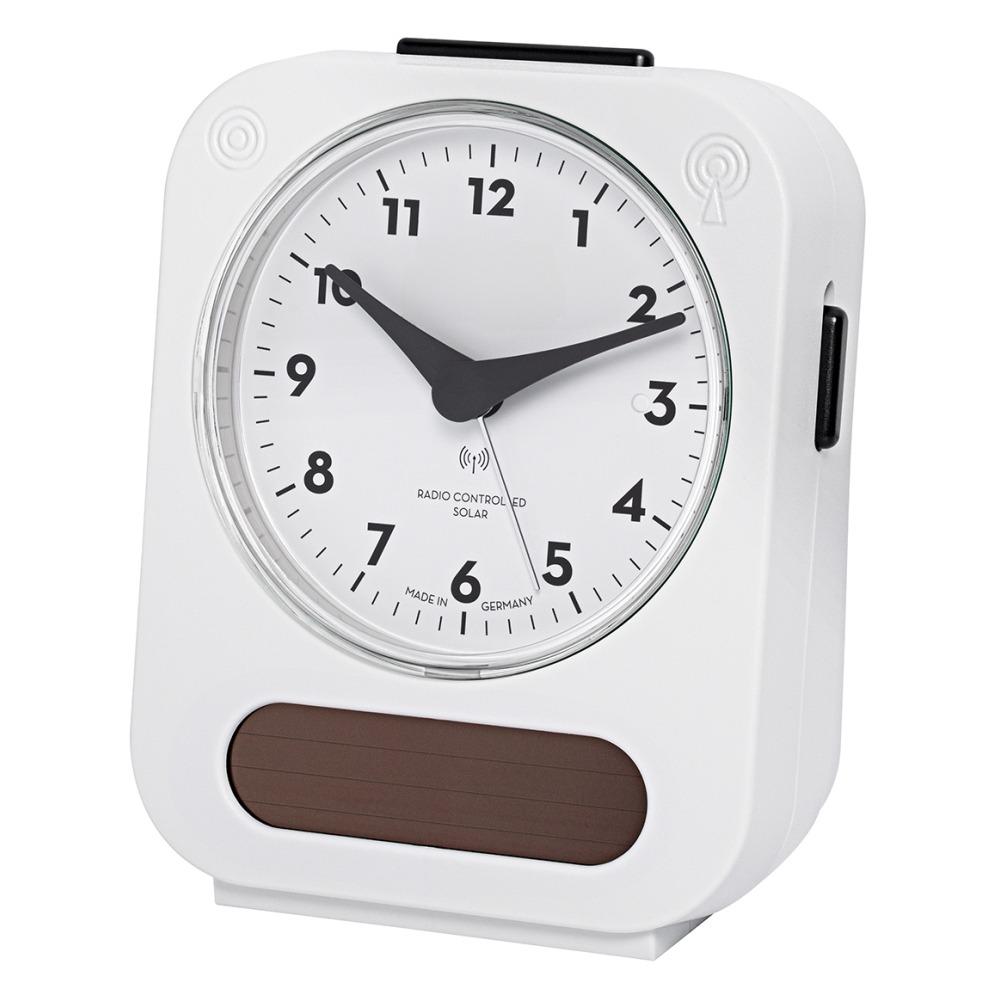 • Wekker 0543-0 is een witte kunststof solar wekker met zwarte knoppen.