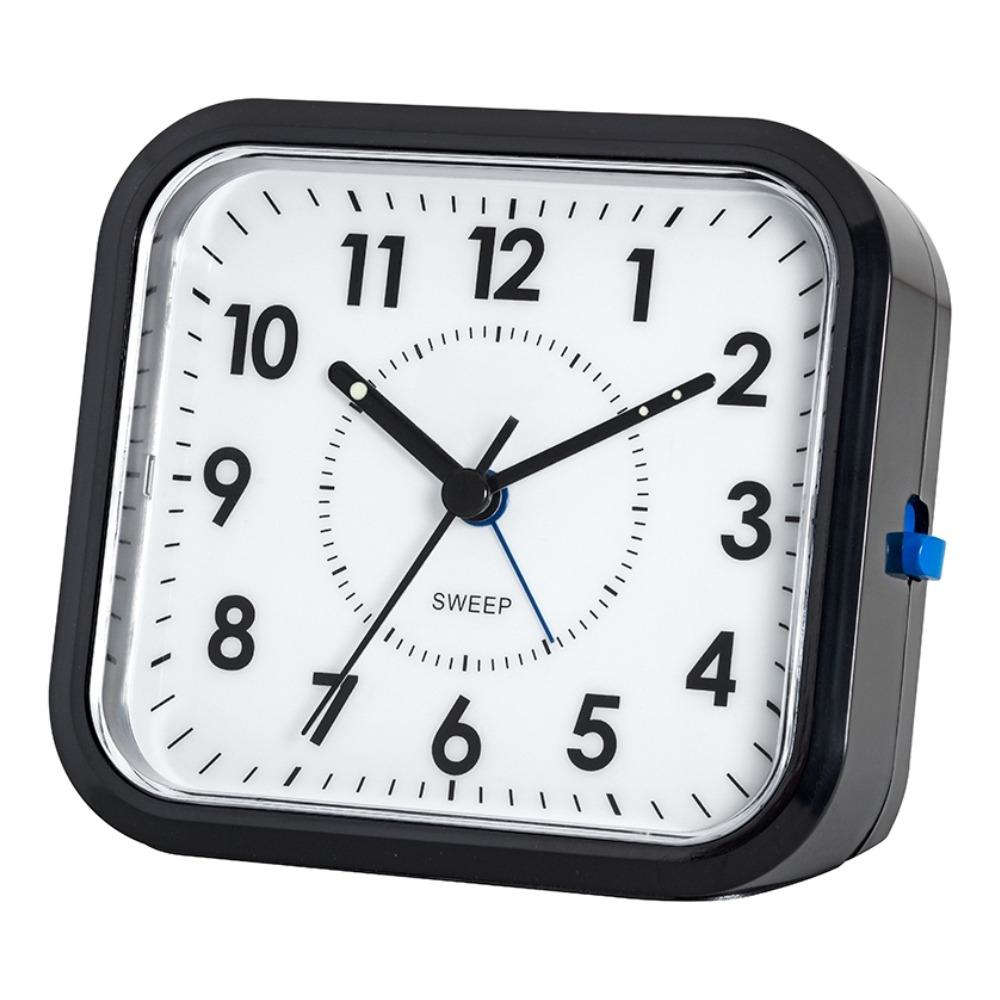 • Wekker 0529-17 is een zwarte wekker met blauwe knoppen, witte wijzerplaat met zwarte opgedrukte cijfers en zwarte wijzers.