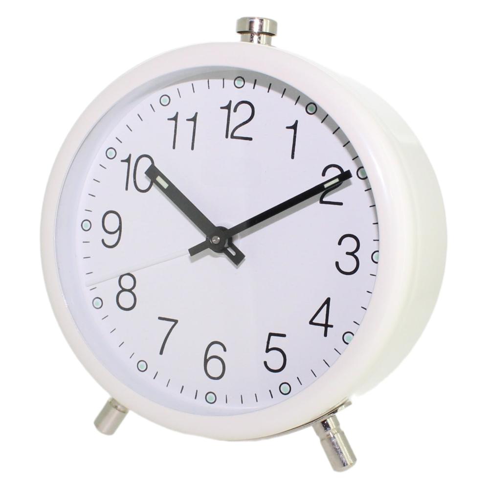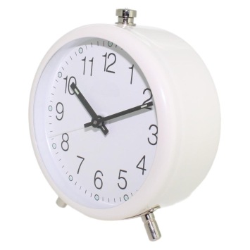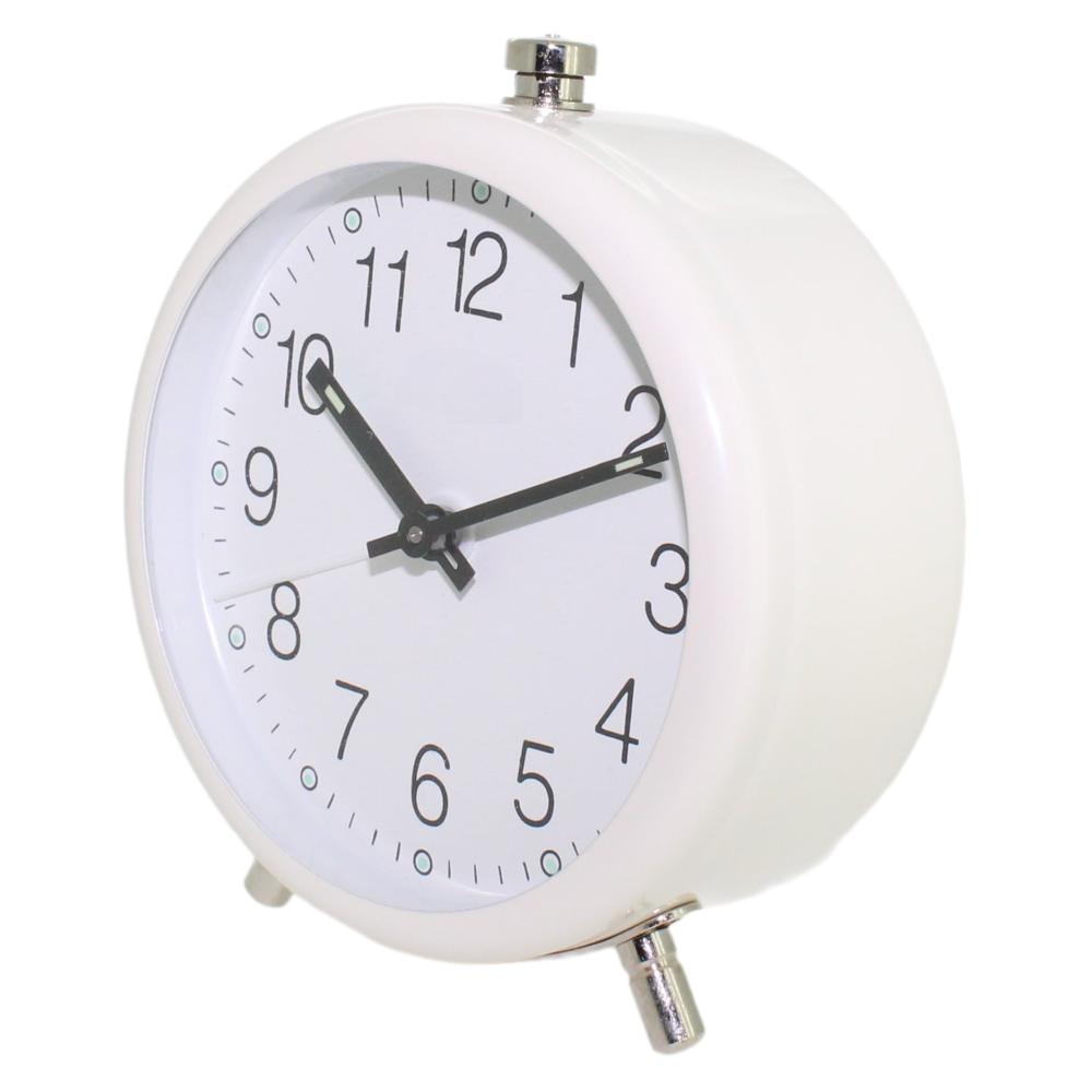 • De metalen uren en minuten wijzers zijn zwart en de wekwijzer is wit.