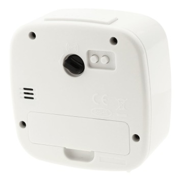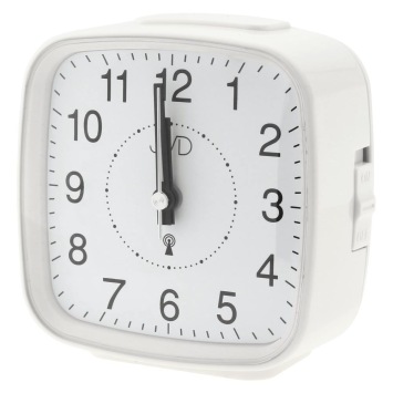 • Wekker RB862-1J is een witte kunststof wekker met zwarte opgedrukte cijfers op de witte wijzerplaat.
