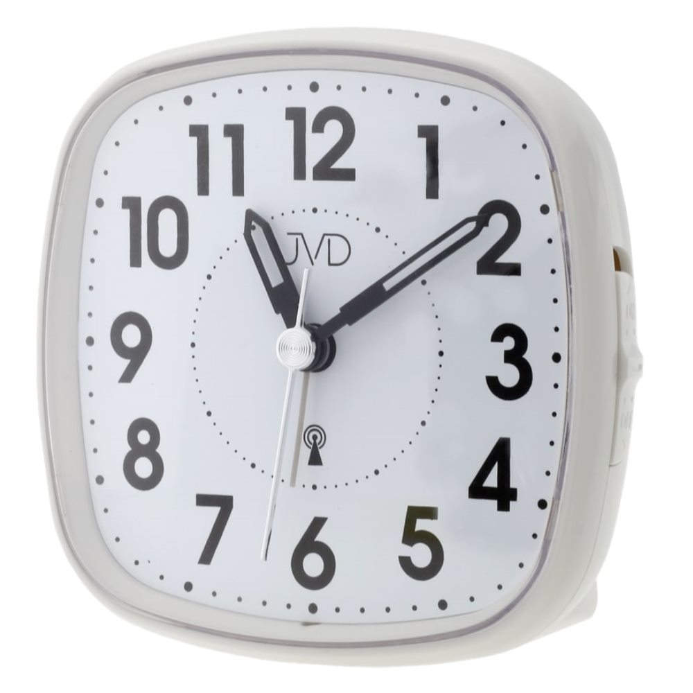 • Wekker RB871-1J is een witte kunststof wekker met zwarte opgedrukte cijfers op de witte wijzerplaat.